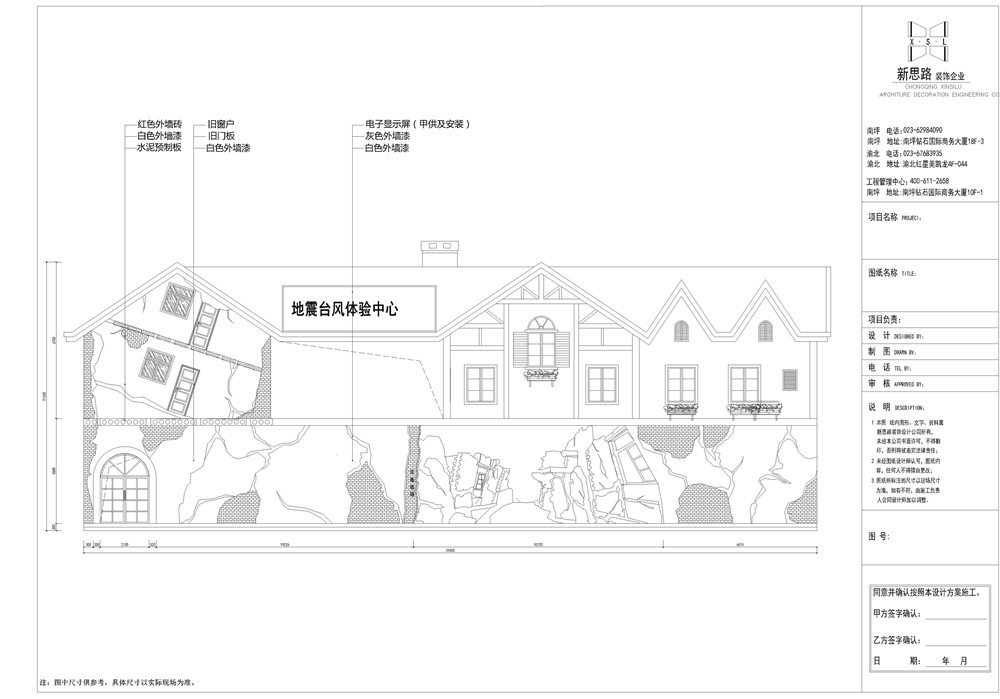設計施工項目:仙女山旅游景區(地震體驗中心) 設計立面圖 設計效果圖