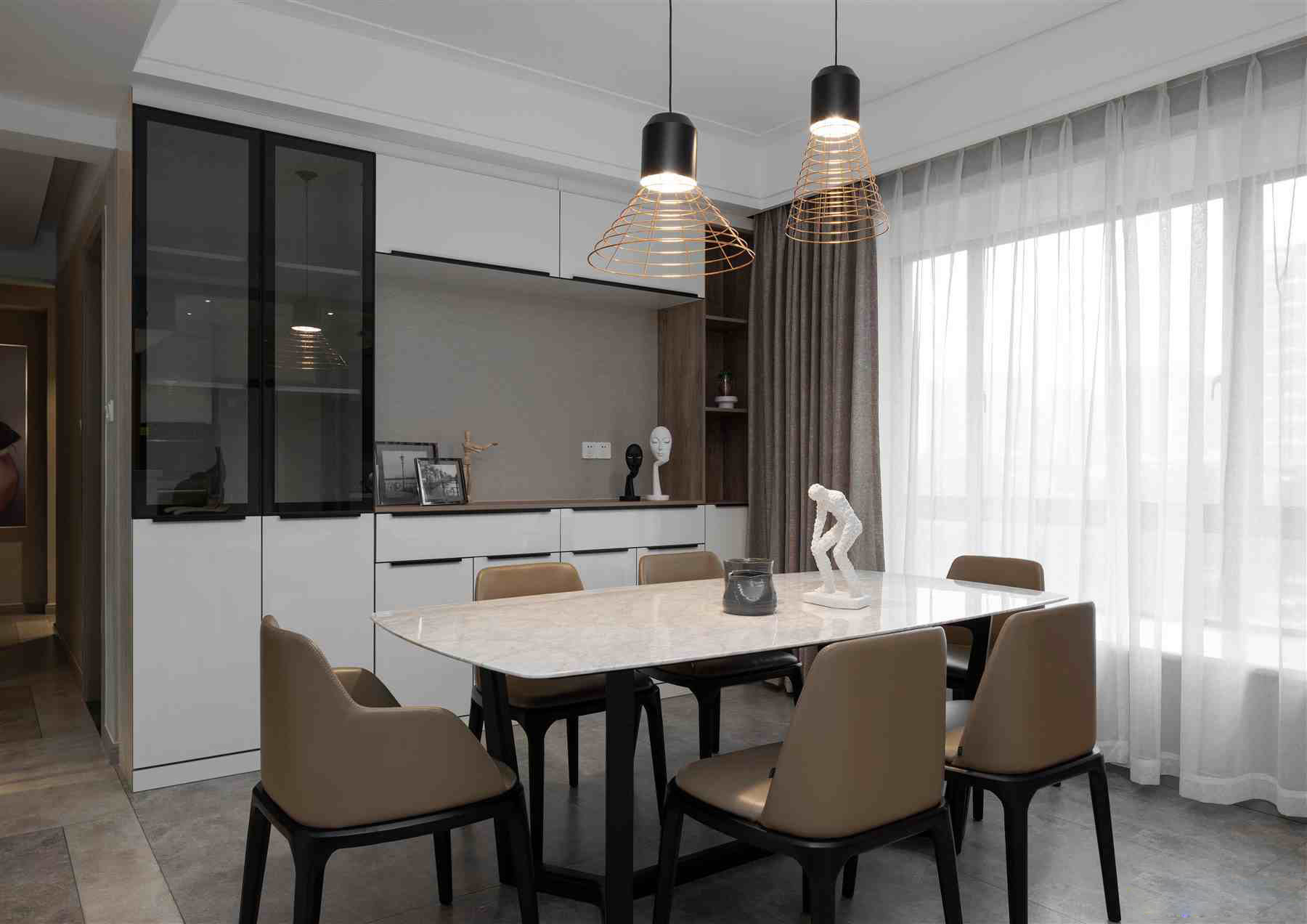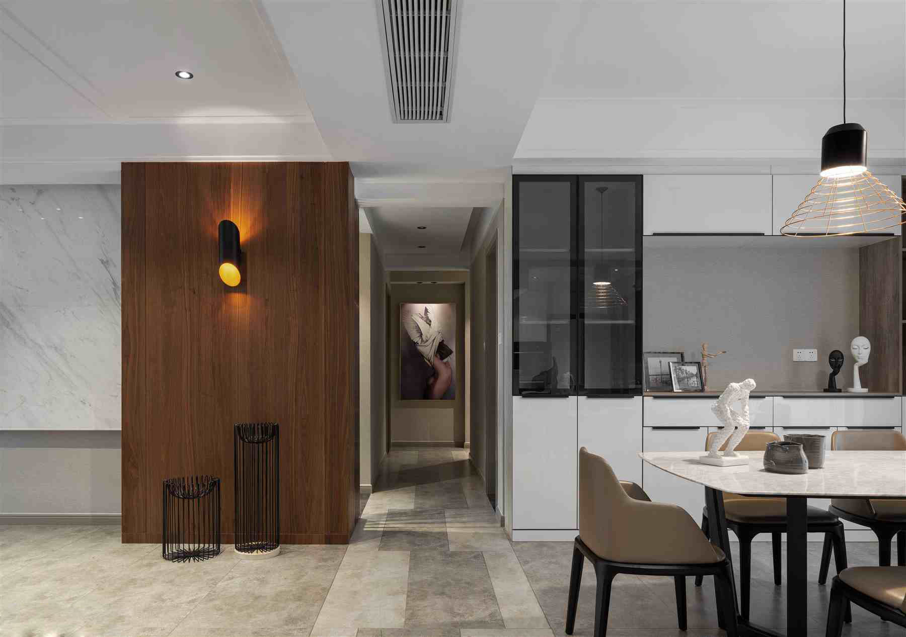 后現(xiàn)代風(fēng)格作為一種設(shè)計潮流,推崇自然、高雅的生活情趣中,更加強調(diào)人性化的主導(dǎo)地位,突出設(shè)計的文化內(nèi)涵。簡單的石膏線線條,獨具設(shè)計感的射燈設(shè)計,空間的光線明暗有序,