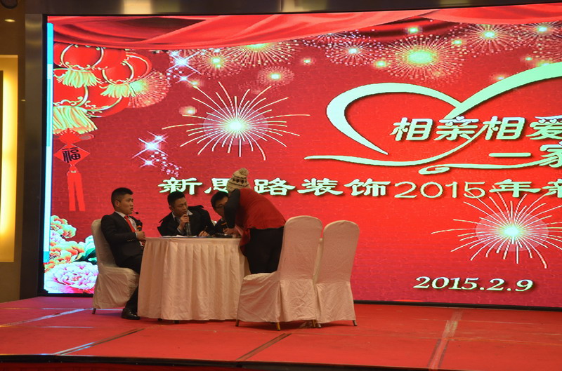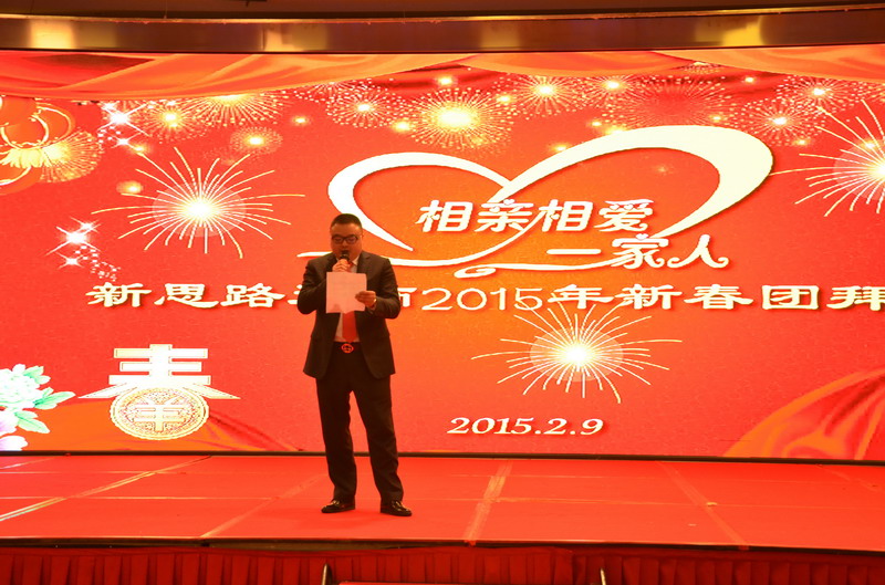 晚會首先由主持人致歡迎詞,隨后由李總作重要講話。李總表示,剛剛過去的2014年,是新思路各項工作穩步推進、成績顯著的一年。一年來,我們在全體員工的齊心協力、奮力拼搏下,全力推進新思路的大發展,憑借一股你追我趕的虎勁,創造了一個又一個奇跡。公司核心競爭力不斷增強,企業管理卓有成效,團隊凝聚力進一步增強,公司上下逐步形成了穩步發展、和諧團結的良好局面。