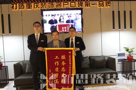 劉老師送來的這面錦旗,不僅僅是一面錦旗,是一種榮譽,是劉老師對新思路裝飾企業的肯定和認可,更是對我們的一種“鞭策”,促使我們更加用心地服務好我們的客戶,時刻兌現我們新思路裝飾企業的工作標準——客戶滿意是我們唯一的工作標準。在今后的工作中,新思路將一如既往地做好自己的工作,做出更多“精品工程”、“樣板工程”,來回報我們的客戶,。