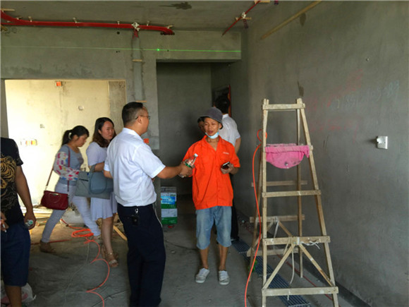 雖然天氣炎熱,但我們奮戰一線的工人們卻始終堅守崗位,堅決做好工程質量,按照標準進行施工,沒有一絲懈怠,旨在為客戶帶去高品質的裝修服務,傳達公司的"責任先行,品質為優"的施工理念。公司送清涼小組,每到一處都要與工人道一聲幸苦了,詢問工地的高溫防護措施是否實施到位,叮囑大家"身體才是革命的本錢",在這個炎炎夏日,不僅要嚴格按照標準施工,而且要做好防暑降溫工作,安全施工。
