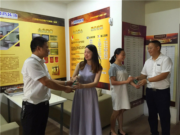 高溫送清涼活動作為新思路一貫作風,不僅得到一線員工的肯定,也贏得廣大業主朋友和業內人士的高度贊揚。保利觀塘客戶面對突如其來的送水小組,感到萬分的驚訝,說到我們新思路裝飾的不僅工地做得很好,而且各方面都很負責,回頭一定送上錦旗感謝。作為我們新思路家人聽到此番話語的時候,心里自當是如甘露般清爽。