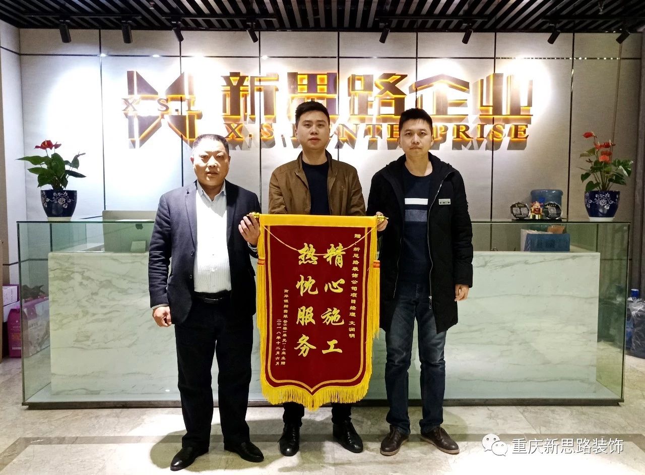 2018年12月9日下午,新思路裝飾又收到業(yè)主感謝錦旗了,來自南岸區(qū)銀翔翡翠谷的業(yè)主李老師專程來到南坪總部將一面印有“精心施工,熱忱服務(wù)”的錦旗交到我們項(xiàng)目經(jīng)理文潤明手中,以感謝新思路裝飾高品質(zhì)工藝和優(yōu)質(zhì)貼心的服務(wù)。