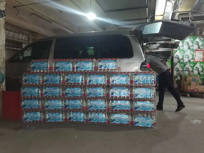在前往一線工地送水前,我們做了周密且詳盡的計劃,先行采購大批飲用礦泉水。負責采購工作的工程部經理與質檢早早前去批發市場,挑選了品質較普通飲水純凈水更高的礦泉水,規劃好送去各個工地的飲用水數量,采購完成后整箱裝車,準備前去工地。