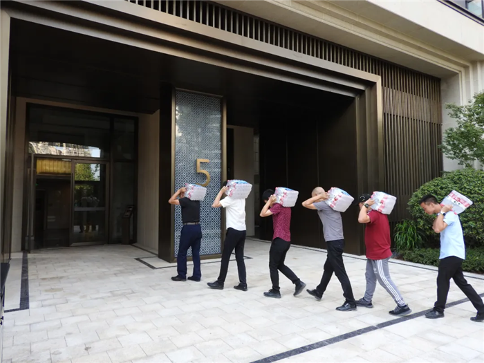 高溫酷暑,施工不易。一線工人的身體狀況與安全問題,讓新思路裝飾的領導們時時牽掛著。為了防暑需求,新思路裝飾不僅先后采購了十滴水、藿香正氣液等防暑降溫用品供工人使用,更考慮到夏季容易口渴,對飲用水的需求會比較大,于是在2020年8月27日這一天,由領導層牽頭,組成了高溫慰問小組,奔赴各個小區,為一線工人送去公司的關懷。