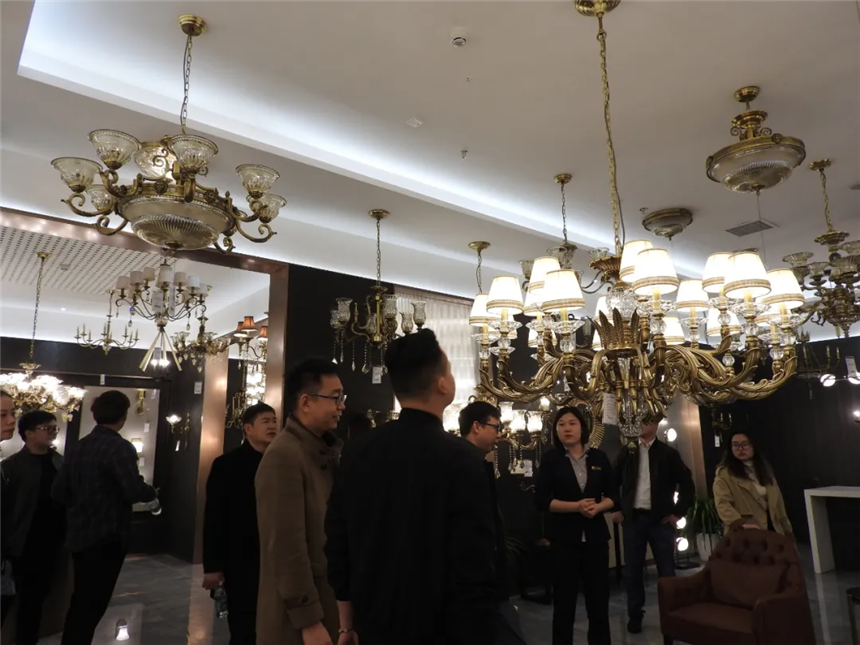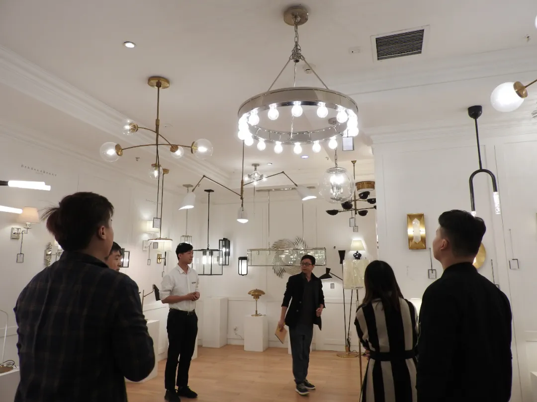 設(shè)計師們正在店員的帶領(lǐng)下參觀燈具