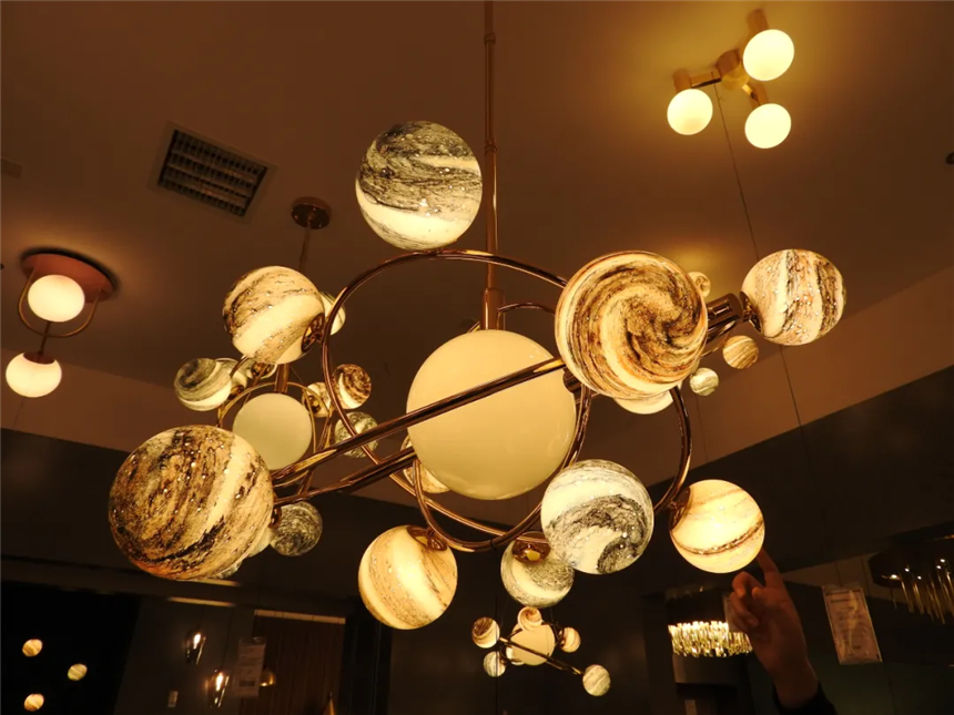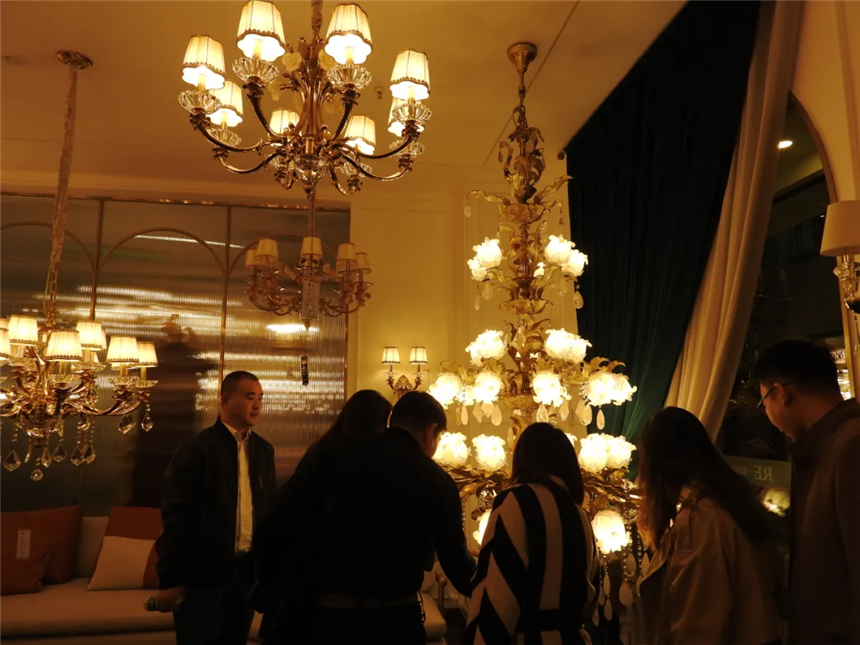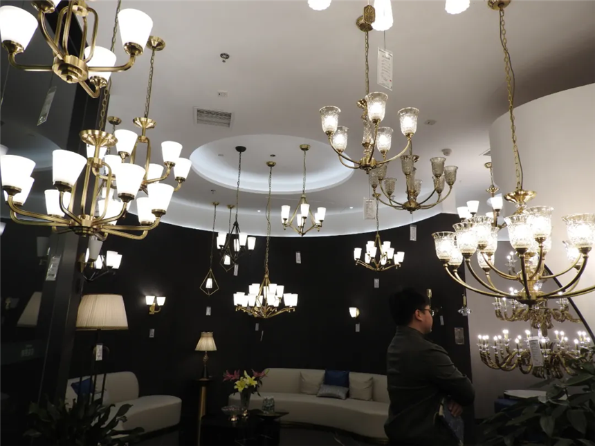 各種與歐式、美式風(fēng)格適配的燈具,奢華無比。最后一盞燈被店員稱為“鎮(zhèn)店之寶”,全手工黃銅打造,價值人民幣三十余萬
