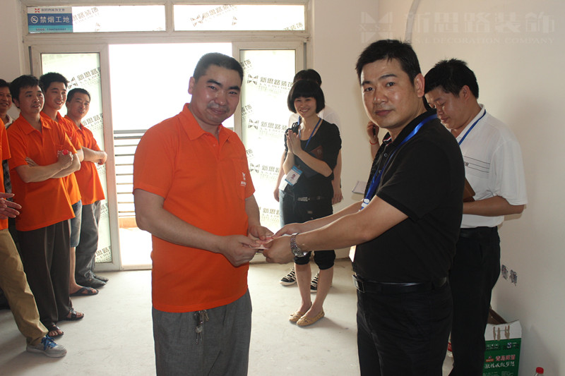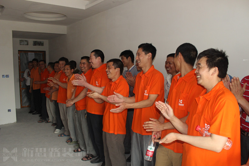 培訓當天天氣炎熱,氣溫高達36℃,但工人依舊精神飽滿,整齊穿戴新思路工服,井然有序的排成一列,展現出新思路裝飾施工隊伍團結向上的新形象。在培訓中,張總以現場工地為實例,通過一些鮮活的事例,全面剖析了漆工工種現階段工藝技術提升要領,對照問題、難點尋找最佳解決方案,提出了很多創新性的漆工工藝,他的精彩發言不時博得工人們的陣陣掌聲。同時,工人們也針對實際施工情況提出了一些獨到的觀點和見解,對于積極發言的工人,工程部也當場給予現金獎勵,培訓現場掌聲不斷,氣氛輕松而熱烈。培訓最后,張總作了總結性發言。他表示:“漆藝水平事關工程質量和客戶口碑,我們的工人們一定要多思考、多學習,努力鉆研新的漆工技藝,提高自身的漆工水平。同時也希望你們能把新思路當成自己的家,大家都能在這個舞臺上共同進步,共同提高,賺更多的錢!”張總樸實真摯的話語再次博得了所有人的熱烈掌聲。