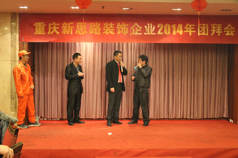 晚會首先由主持人致歡迎詞,隨后由李總致新年賀詞。李總表示,過去的2013年,是新思路取得輝煌成績的一年,公司科學發展,創新機制體制,構建出有特色、有較強競爭力的企業發展模式,全力做品質裝修踐行者,公司實力不斷增長,工程質量逐步走在行業前端。這些成績的取得,歸功于“裝修只做客戶口碑”企業文化的先進性,歸功于全體新思路員工的團結奮斗,歸功于所有合作伙伴的支持和配合,歸功于社會各界的關心和幫助。最后,李總對全體新思路人和所有關心、支持新思路發展的合作伙伴和社會各界人士致以崇高敬意和衷心感謝。