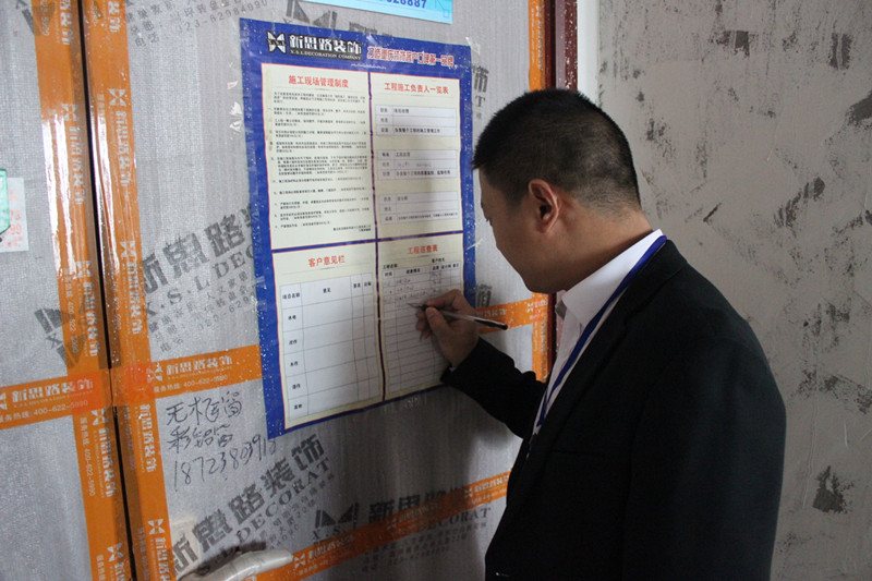 此次巡查主要針對工地形象,如標(biāo)示牌、成品保護(hù)、器械配備、清潔衛(wèi)生等多方面進(jìn)行考核和檢查。同時對隱蔽工程如水電改造、土建、基層處理等工種進(jìn)行認(rèn)真檢查。在各個施工現(xiàn)場,工人們正有條不紊的進(jìn)行施工,各樣材料的擺放及成品保護(hù)也都細(xì)致到位,工地綜合質(zhì)量基本達(dá)標(biāo),處處顯露出新思路“精鉆工程”的細(xì)致與獨(dú)到之處。在檢查的同時,巡查小組還依照公司工地管理相關(guān)規(guī)章制度,對所有工地進(jìn)行了總結(jié)評分,并由客服人員記錄在案。巡查過程中,文經(jīng)理一直把“工程質(zhì)量”掛著嘴邊。他多次強(qiáng)調(diào),工程質(zhì)量是新思路的根本,是公司生存和發(fā)展的命脈,每個質(zhì)檢和項目經(jīng)理必須要以身作則、恪盡職守,做好工地質(zhì)量檢查和施工工作,做好工地服務(wù)的每一個細(xì)節(jié),為我們的客戶把好工地質(zhì)量關(guān)。
