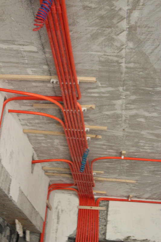 文經(jīng)理正在向項目經(jīng)理講解強(qiáng)電線路施工要求