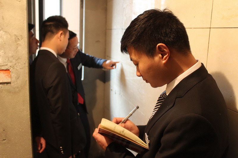 巡查小組忘記路上的奔波勞累,向魯能領秀城工地邁進
