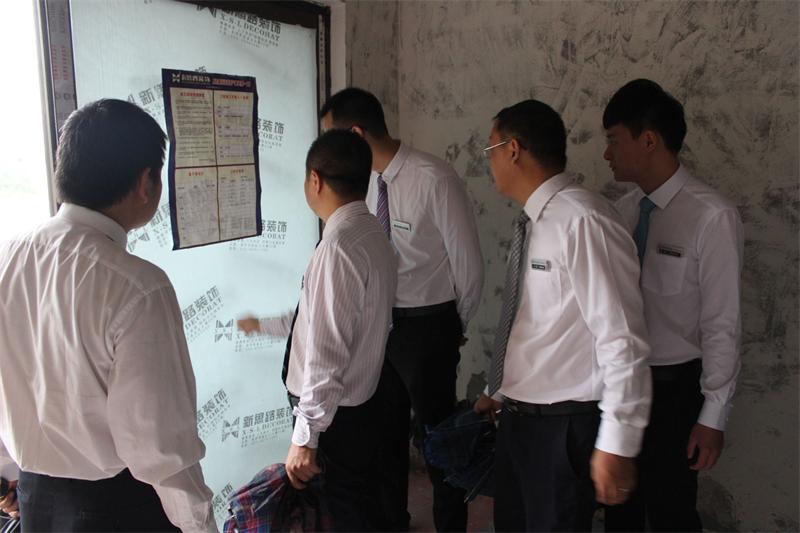 9月份是傳統的裝修旺季,也是公司保品質、促業績的關鍵時期,為保障工程質量,加強工地管理工作,9月11日,由張總親自帶隊,以全體管理層干部組成的巡查小組,冒雨對金輝城·花樣派、保利江上明珠、魯能領秀城、龍湖·拉特芳斯等多個工地進行了突擊檢查。
