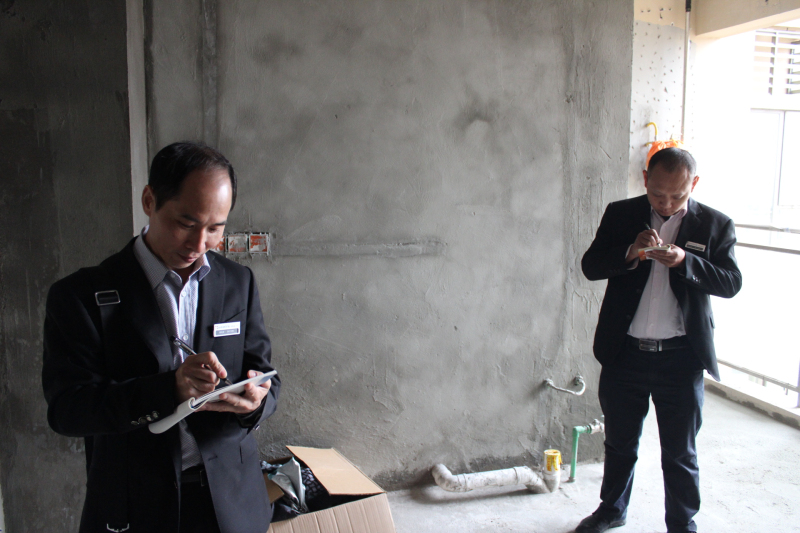 此次巡查的工地中,有剛進場開工的,有處于水電階段的,也有即將完工交付的,基本保證了此次檢查能夠覆蓋各階段的工程內容。“進門首先檢查工地是否整潔,然后看安全保護,接下來看施工日志和施工情況。”文經理強調說。新思路裝飾注重每一個細節,尤其是工地形象更是重中之重,進門的第一件事就是確認工地形象是否達到公司標準。在檢查過程中,從水電線路的走位,到木工的制作;從材料的堆放,到垃圾的處理,巡查人員均嚴格按照公司工地管理的相關標準進行檢查,發現問題現場通知相關項目經理限期整改到位,真正做到為客戶把好工地質量關。
