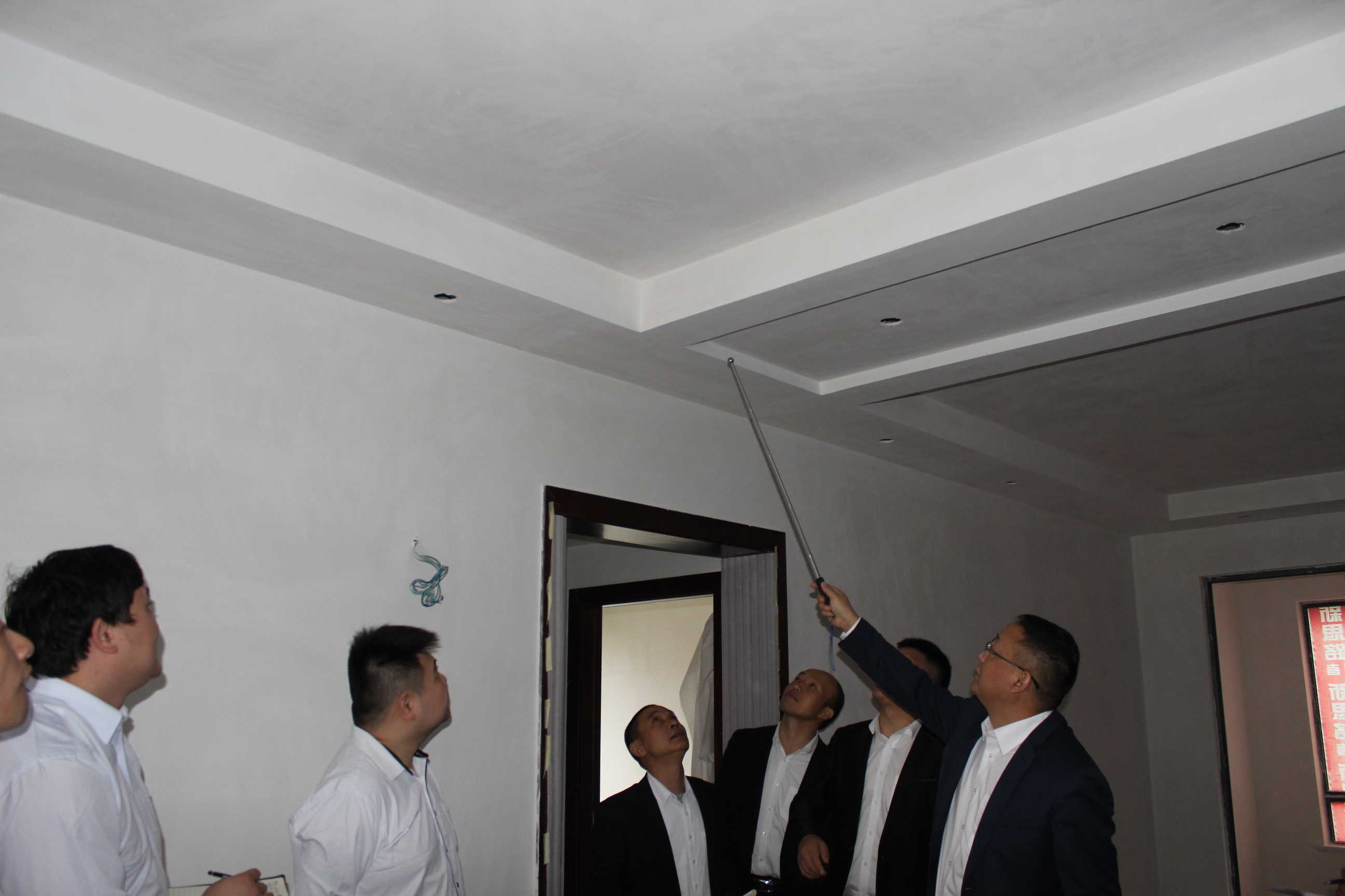 文經理正在給項目經理、工程質檢分析吊頂工藝