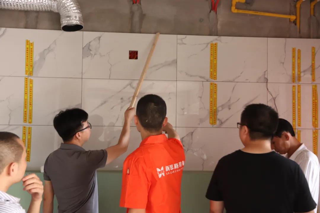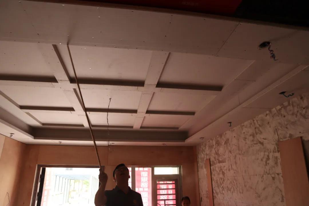 我們來到的第一處工地是水電階段剛結(jié)束、正在進(jìn)行硬裝階段的工地??蛻粽诠さ厣喜榭辞闆r,設(shè)計師敖元壩剛到現(xiàn)場,就和我們在施工的工人以及在場的客戶交流起來。