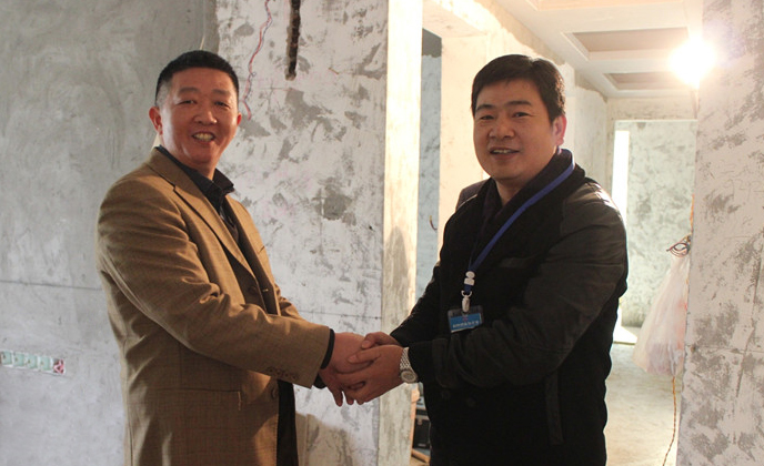在雅居樂20-5-5工地,我們巧遇了正在工地忙碌的業主蔣老師。得知我們是巡查小組之后,蔣老師非常熱情地同張總握手,并連連稱贊新思路施工水平高,服務熱心周到,令他非常滿意。張總代表公司對蔣老師的信任和肯定表示了感謝,他鄭重表示,為客戶提供放心有保障的裝修服務是我們新思路的責任,客戶的認可和肯定是對我們的最高褒獎。新思路將不忘客戶托付,把每個工程都做成客戶心中滿意的“國標工地”。