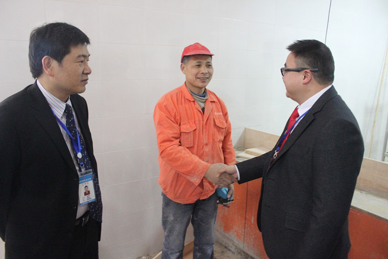 在美的集團員工食堂工地,李總一行認真察看了解了工地的施工進度、施工細節、工藝工序等情況,同時還詳細了解了工人生活和工地安全監管情況。針對檢查中發現的問題,李總要求現場負責人要切實負起責任,保證施工質量,決不允許留下安全隱患,同時做好工人工資發放的各項準備,讓工人們開開心心過好年。