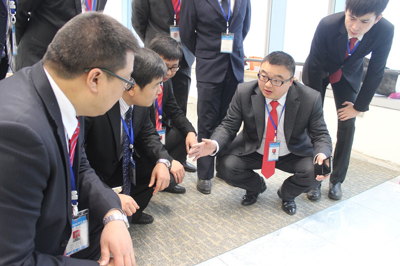 在合生元公司辦公室工地,李總向大家詳細介紹了特殊天花板及地板的施工工藝和用材講究,同時他要求工地負責人既要保證施工進度,也要重視施工質量。李總強調,搶工趕工的同時不忘質量和安全,當前工期十分緊張,發生返工或事故才是最大浪費、最大窩工,負責人一定要嚴格把好施工現場關,把好進場材料關,爭取每次施工質量驗收一次性通過,同時安全工作一刻都不能放松,確保施工安全。