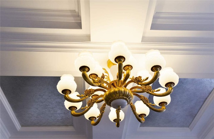 3、文化氛圍的不同,歐式吊燈富麗堂皇,主要出現在比較華麗、高貴的場所。而中式吊燈藝術氛圍較濃,一般出現在民族風較濃的地方及文化藝術氛圍地區。而者并不沖突,看個人喜好。
